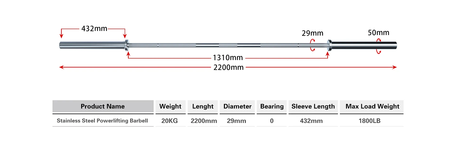 Stainless Steel Powerlifting Barbell